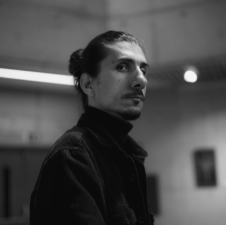 Formado em Audiovisuais e Multimédia pela Escola Superior de Comunicação Social, transpõe para as artes visuais uma linguagem cinematográfica, onde o que não é dito ganha corpo. Realizou as exposições individuais Fragmentos do Invisível (Biblioteca de Marvila, 2025) e Fenda (Auditório Adácio Pestana, 2025), além de integrar a mostra coletiva Foz’Arte no histórico Forte de São João Baptista (2025).